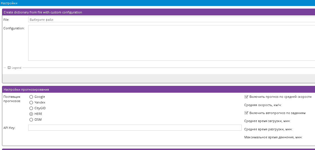 Ventana de configuración para diferentes tipos de tareas.