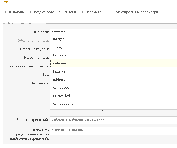 Los parámetros de la plantilla se configuran en el botón Parámetros.